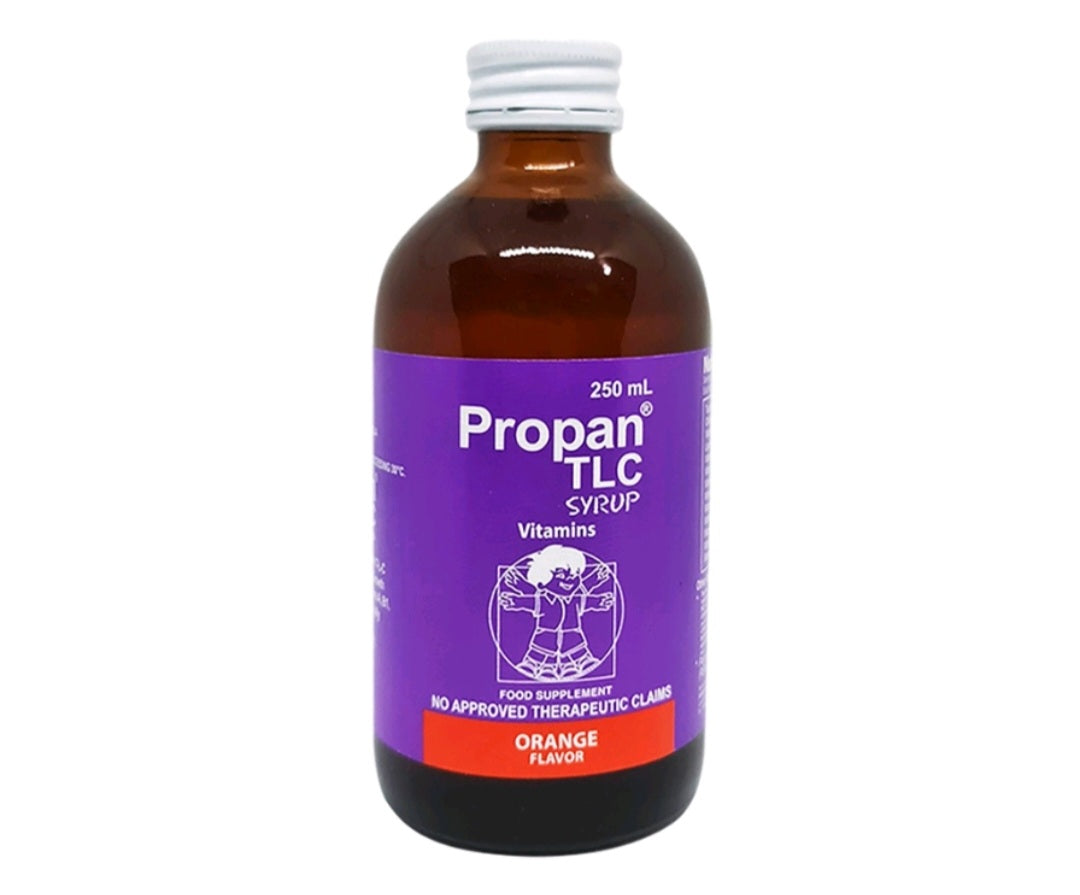 Propan TLC Syrup is a vitamin preparation with TLC (Taurine, Lysine, Chlorella Growth Factor) and 100% RENI Vitamins A, B1, C, and D for your child's daily nutritional needs.